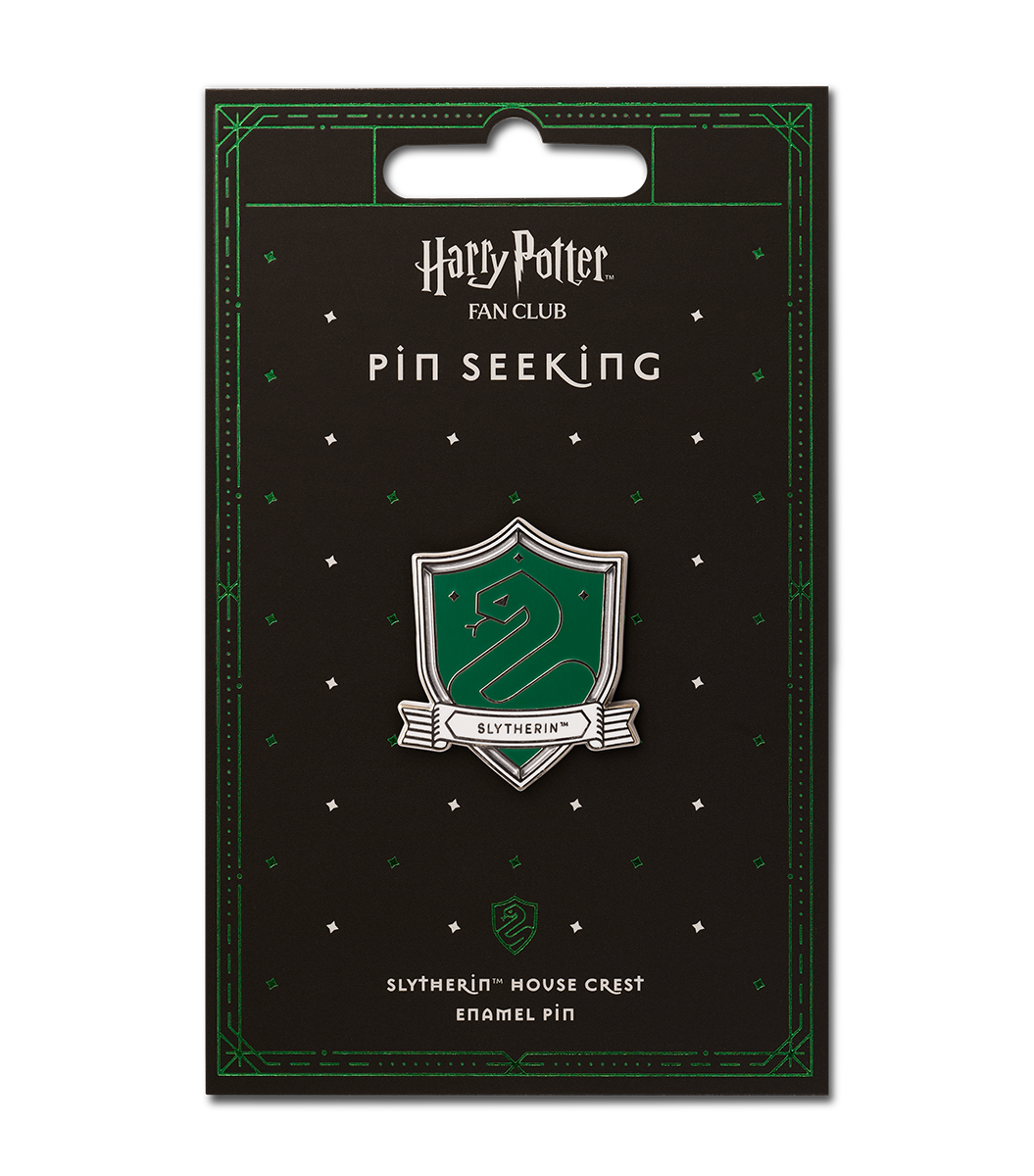 Proudly display which house you belong to with this Slytherin house crest pin! The pin is finely detailed, making it the perfect gift for all Slytherin fans. This enamel pin is part of the Harry Potter Fan Club Pin collection.
